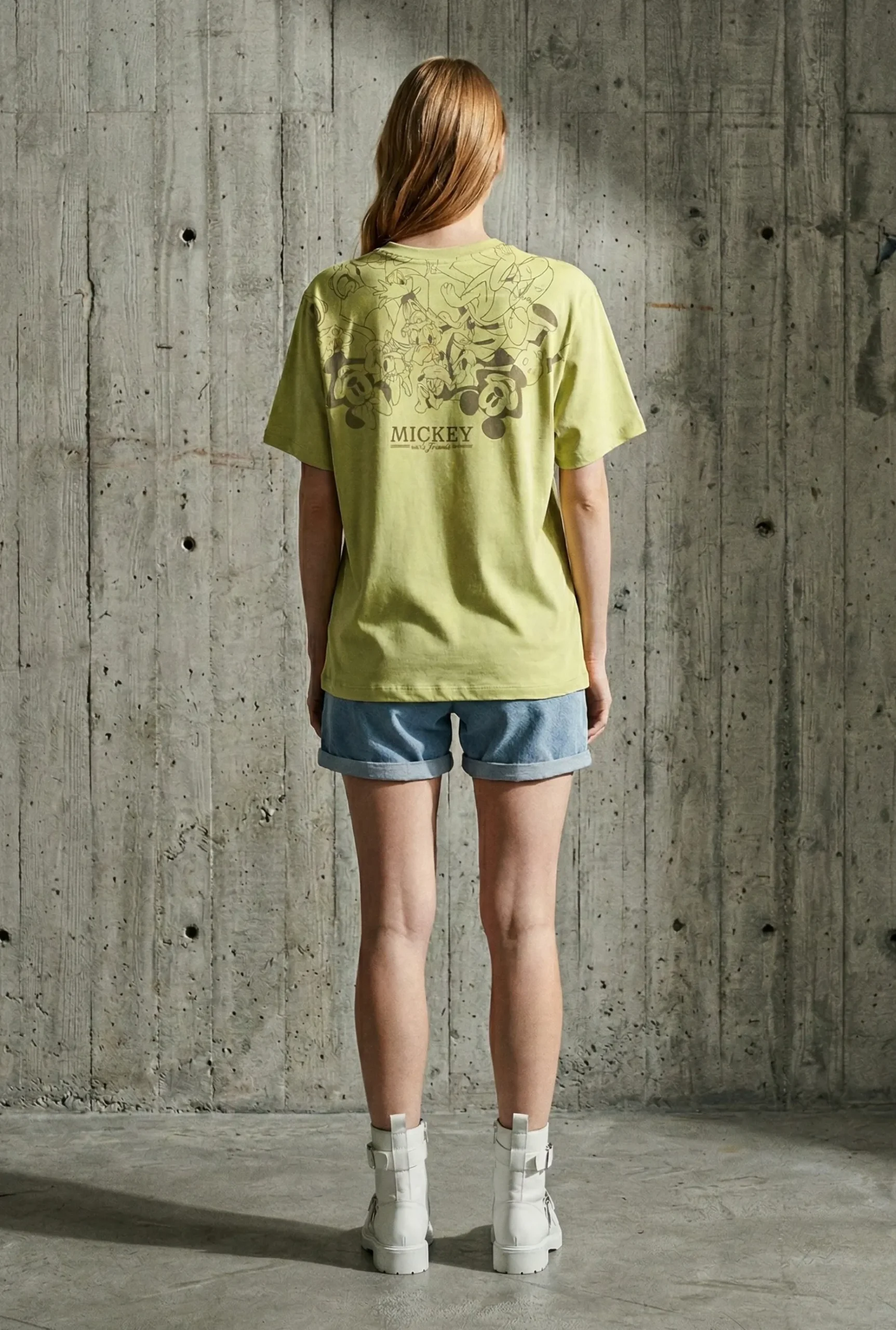 Esta pieza de la colección The Archive © destaca por su narrativa dual. En el frontal, Mickey, Minnie, Donald, Daisy y Goofy aparecen en una ilustración vibrante y retro bajo el lema «Always The Best!». En la espalda, el diseño se transforma en un «Pattern Sketch» de trazos técnicos en color gris antracita, ofreciendo una estética de estudio de animación que rinde tributo a los creadores originales.